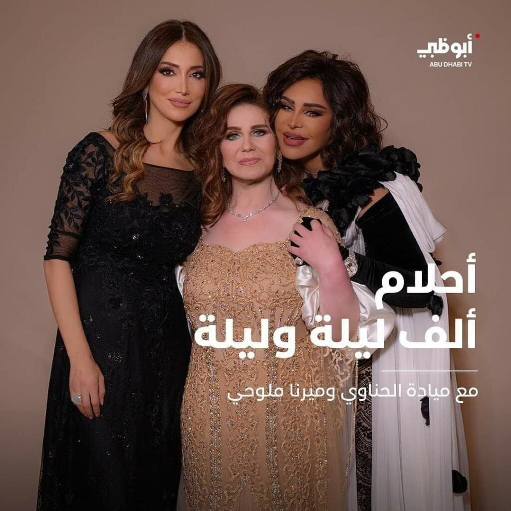 استضافت الفنّانة أحلام الفنّانة الشابّة ميرنا ملوحي في برنامجها (ألف ليلة وليلة) مع القديرة ميادة الحناوي،